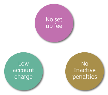 We charge you flat Account fees rather than fees based on a percentage of the value of your investment. So, as your investments grow, your Account fees won’t.
